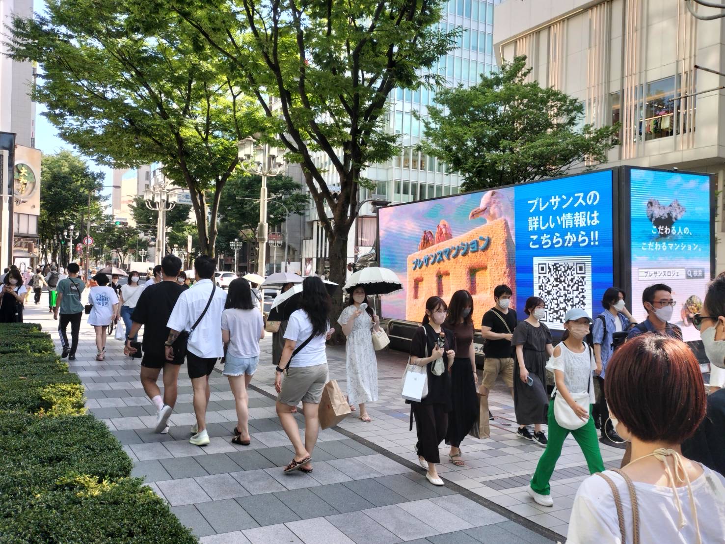 従来のラッピング式アドトラックとは違い、LEDビジョンを搭載しているため、様々な動画やCMデータの放映が可能。