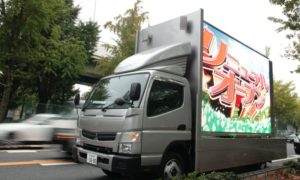 トラックの荷台に大型の看板をつけて、人通りの多い繁華街を走行することが多いアドトラック。